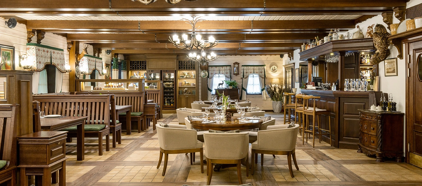 Охотничья кухня – особенность ресторана. Из нашего охотничьего хозяйства доставляется самая свежая дичь. Блюда из лосятины, оленины, мясо лани, косули и муфлона. Повара знают все нюансы приготовления блюд из дичи.